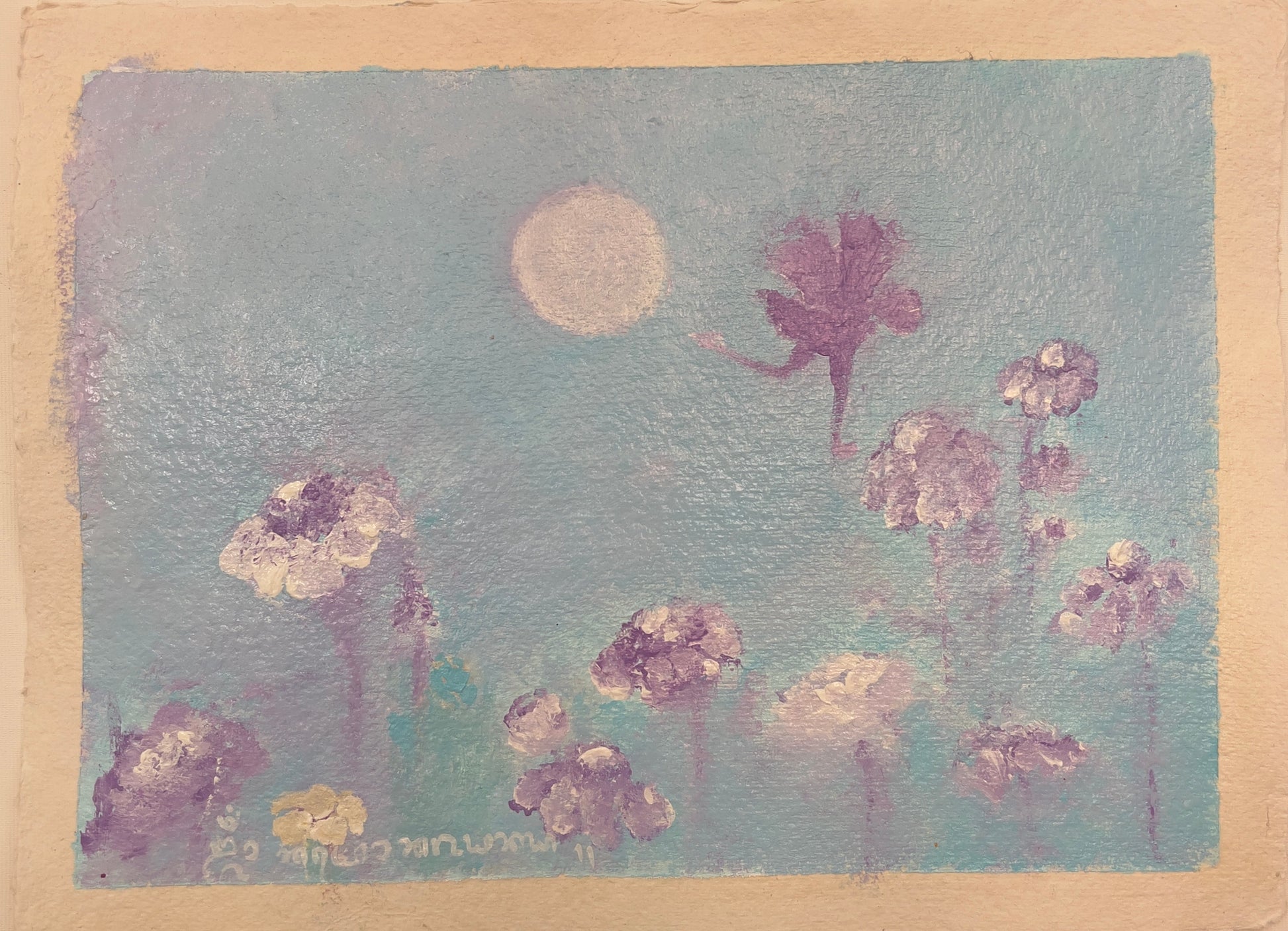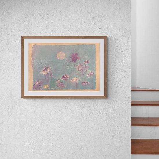 Blooming Blue captures the peaceful essence of enjoying solitude. The fading light of the sun bathes the landscape in soft, warm hues, as delicate flowers sway in the breeze. This painting reflects the serene beauty of a quiet moment, evoking a sense of calm and timeless beauty.