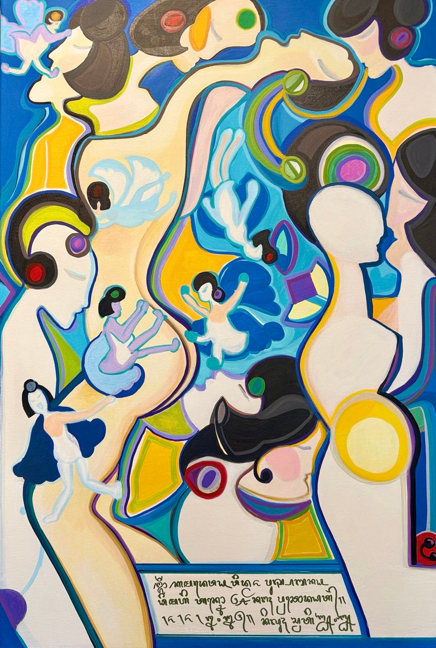 At its heart, this painting explores what love becomes when nurtured with attention and respect. It asks: What if we turned away from the noise and toward each other fully, and without fear? Delicately inscribed within the piece is a Sanskrit mantra: