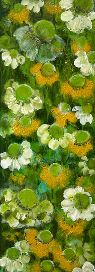 Mindfulness, A meditative piece that invites stillness, introspection, and the quiet art of being present. Soft floral forms unfold gently across the canvas, painted in calming shades of green, warm yellows, and grounding earth tones. Each brushstroke reflects a moment of pause, a breath, a thought, a feeling. The natural color palette evokes a sense of inner peace and connection to the earth, making this artwork not just a visual experience but a space for reflection. Mindfulness is a gentle reminder to slow down, observe, and simply be.