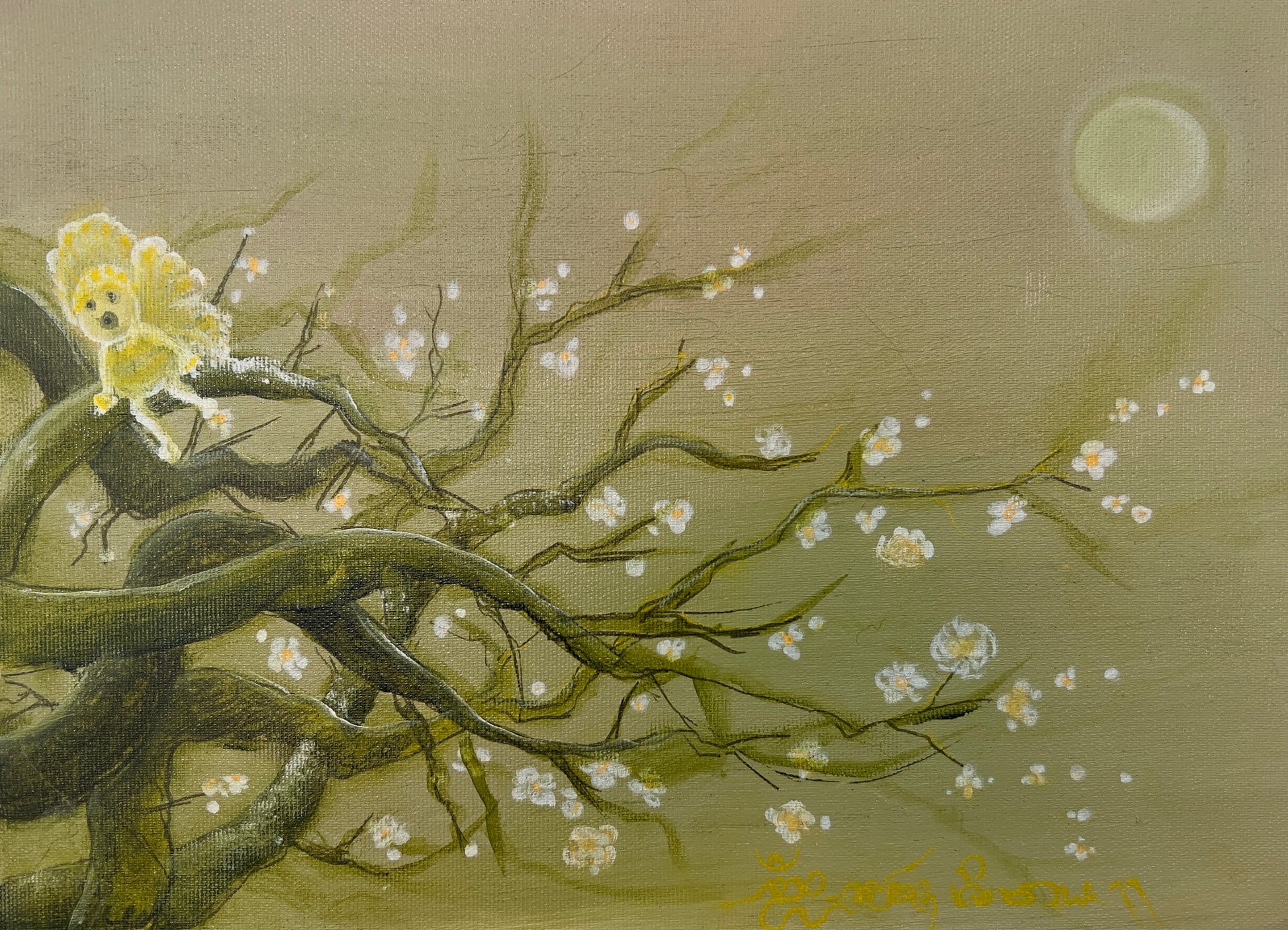 This painting is a tribute to the unspoken bond between nature and the self. The trees hold my secrets and sorrows, yet they stand strong, unshaken. It’s a reminder that nature listens, always knows, and never turns away.