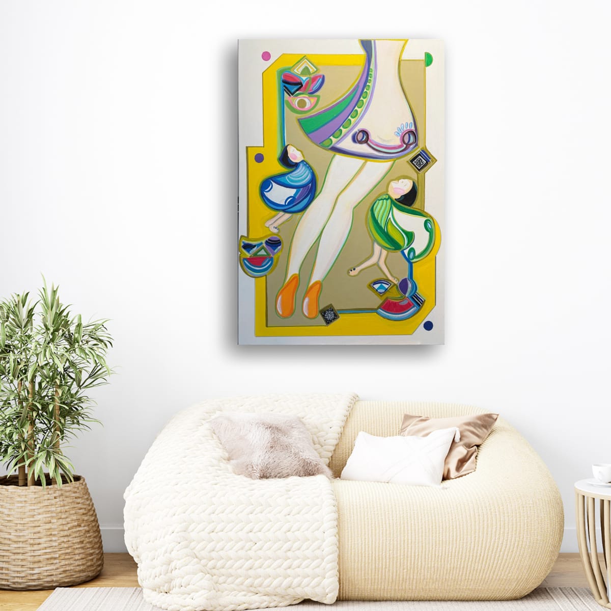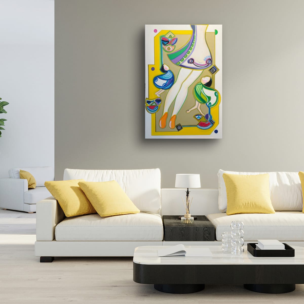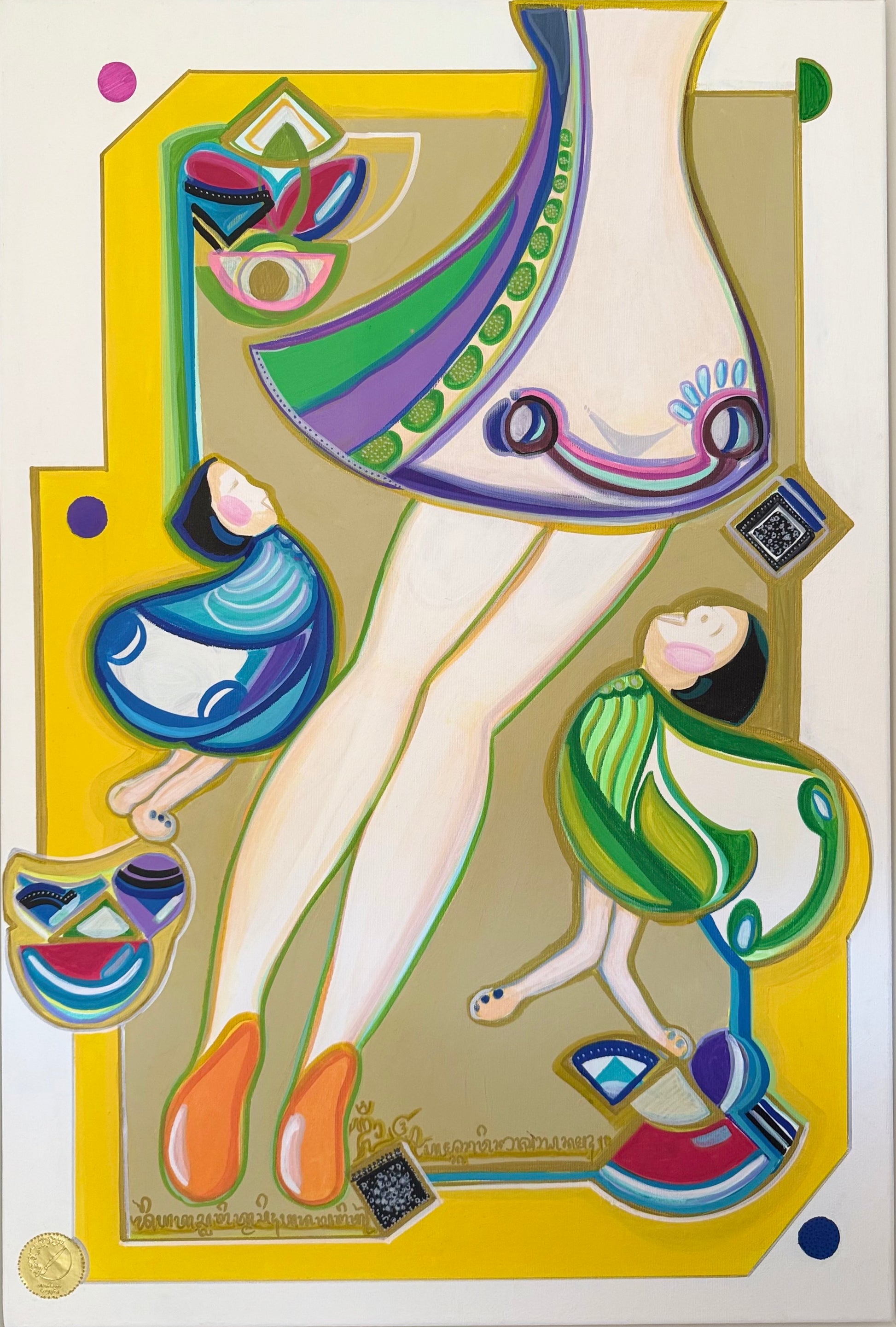 Above the sky, there’s always another surprise. Even the angels, who usually look down, find themselves looking up. The Sanskrit mantra inscribed reads: “Remove arrogance and ego from my heart.”